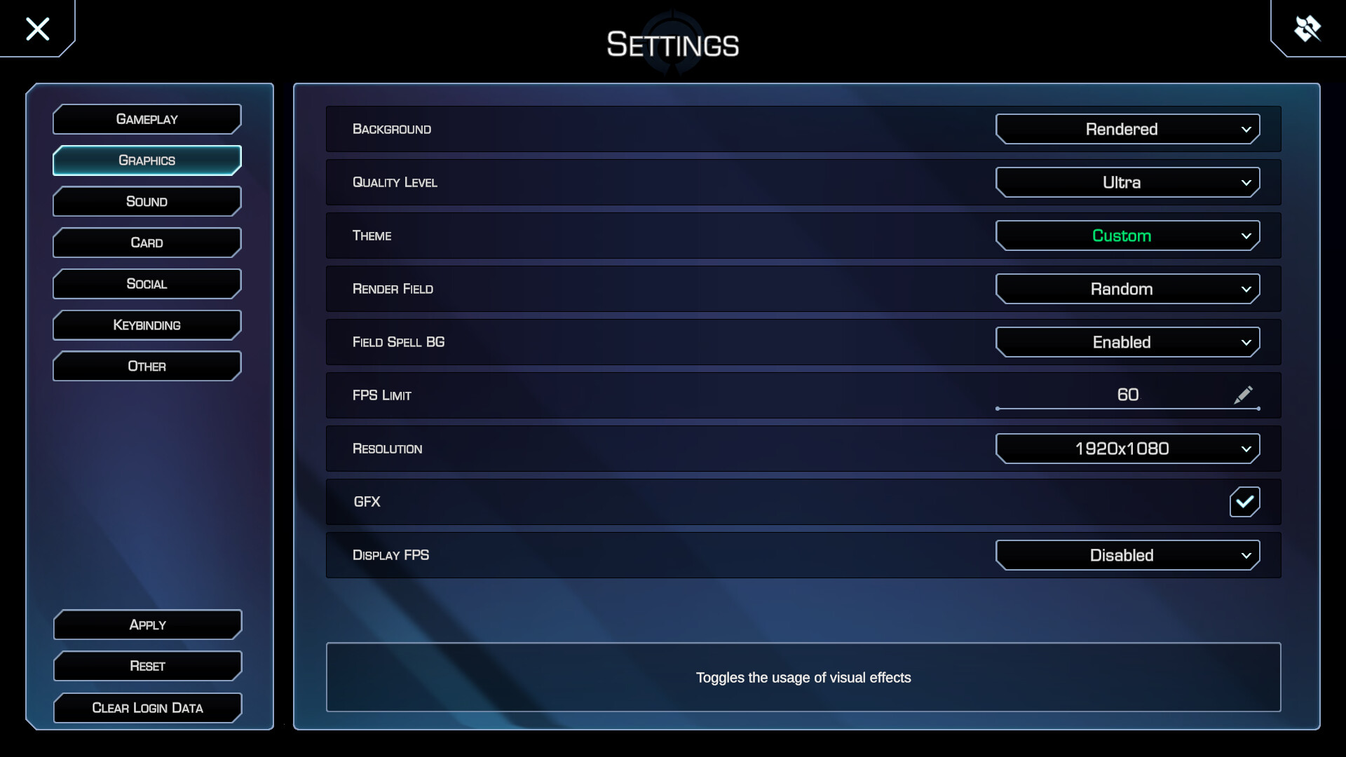 Game graphical configuration: