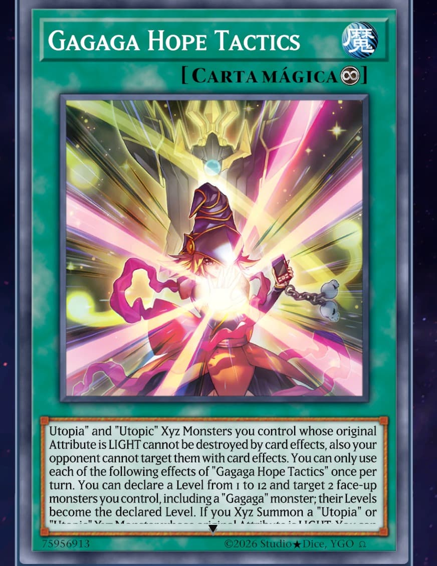 Gagaga Utopic Tactics card name on English-TCG version is mispelled as Gagaga Hope Tactics (Japanese-OCG english translated name version).