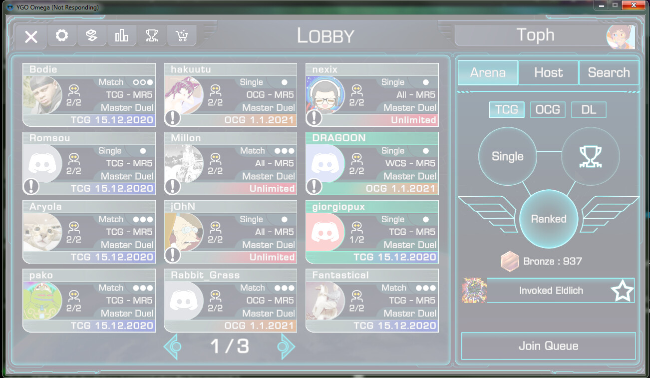 Boot game, Click online, click TCG (because for some reason it defaults to OCG), click join queue. proceed to lose game because game crashes and stops responding and the only thing I can do is restart the program.