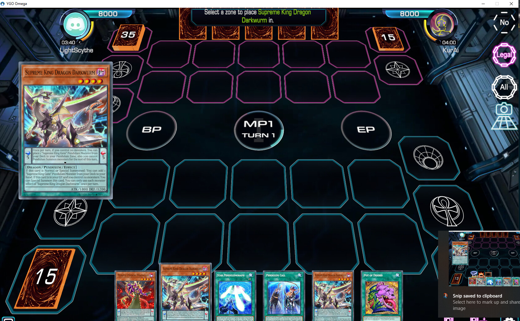 The card should have gave me a highlight on the sides to put the pendulum card to and allow me to click it.