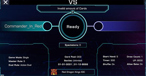 - Play a round in a game mode that requires specific cards/card types, while your default deck is a deck that does not fulfil those conditions. (I suspect this may also work for decks that use OCG cards in a TCG game, and vice versa, but I have yet to check)