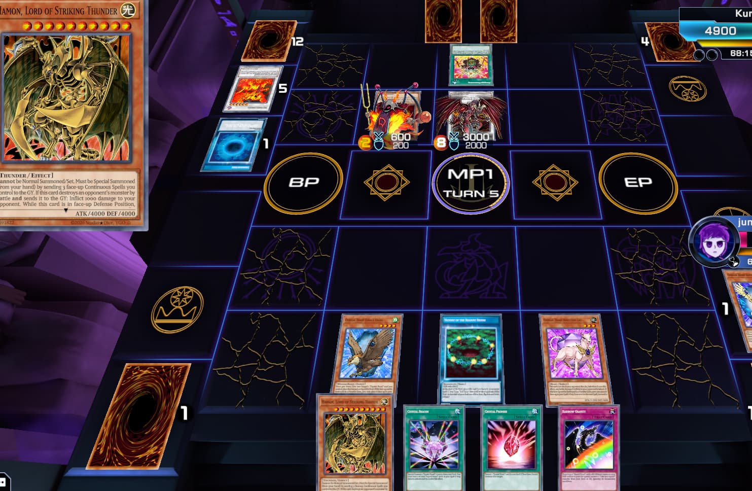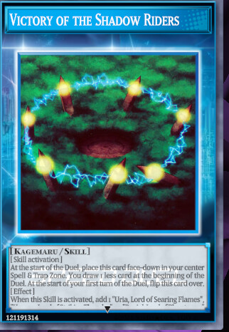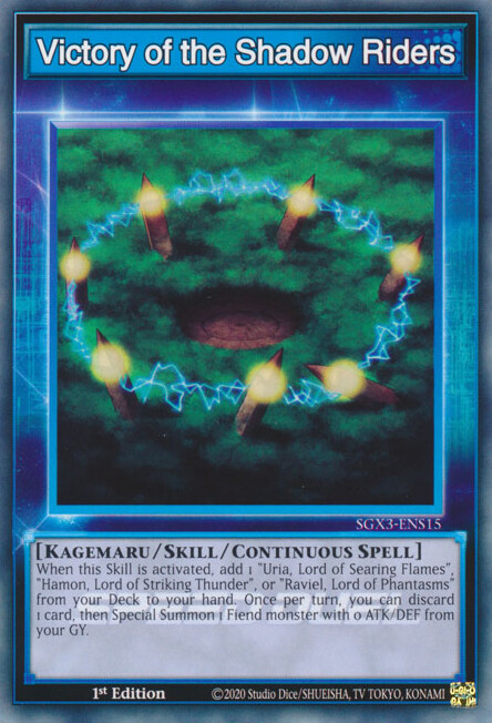 I was trying to summon ‘Hamon, Lord of Striking Thunder’ by Tributing two Crystal Beasts (treated as Continuous Spells) and the Skill Card ‘Victory of the Shadow Riders’, but there was no option to summon it. Looking at the card, I noticed that the Skill Card’s text was incomplete: it only says ‘[Kagemaru / Skill]’, but it is supposed to be ‘[Kagemaru / Skill / Continuous Spell]’. I suppose this is the reason why I couldn’t
