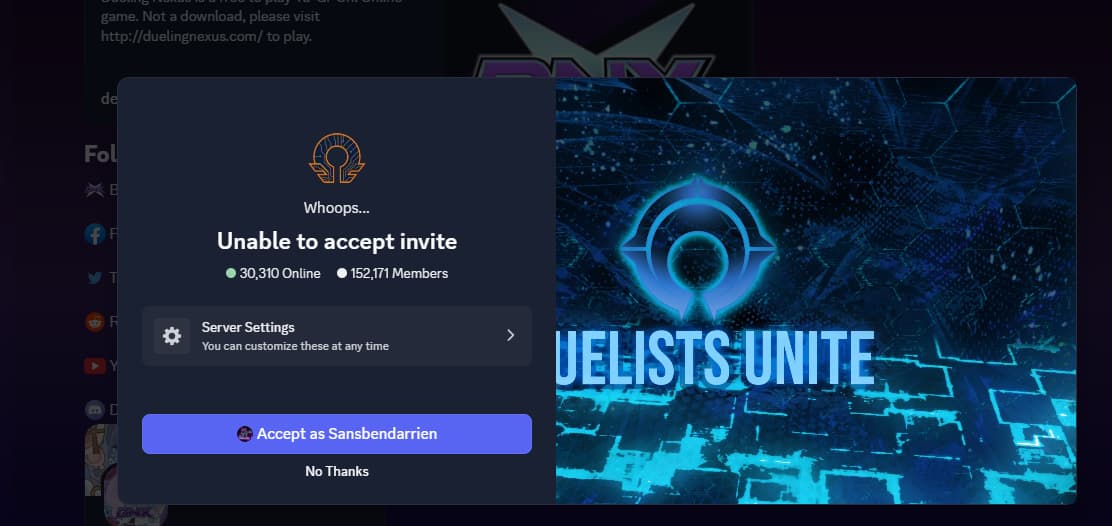Are you attemting to join from the link on the duelist unite webpage?